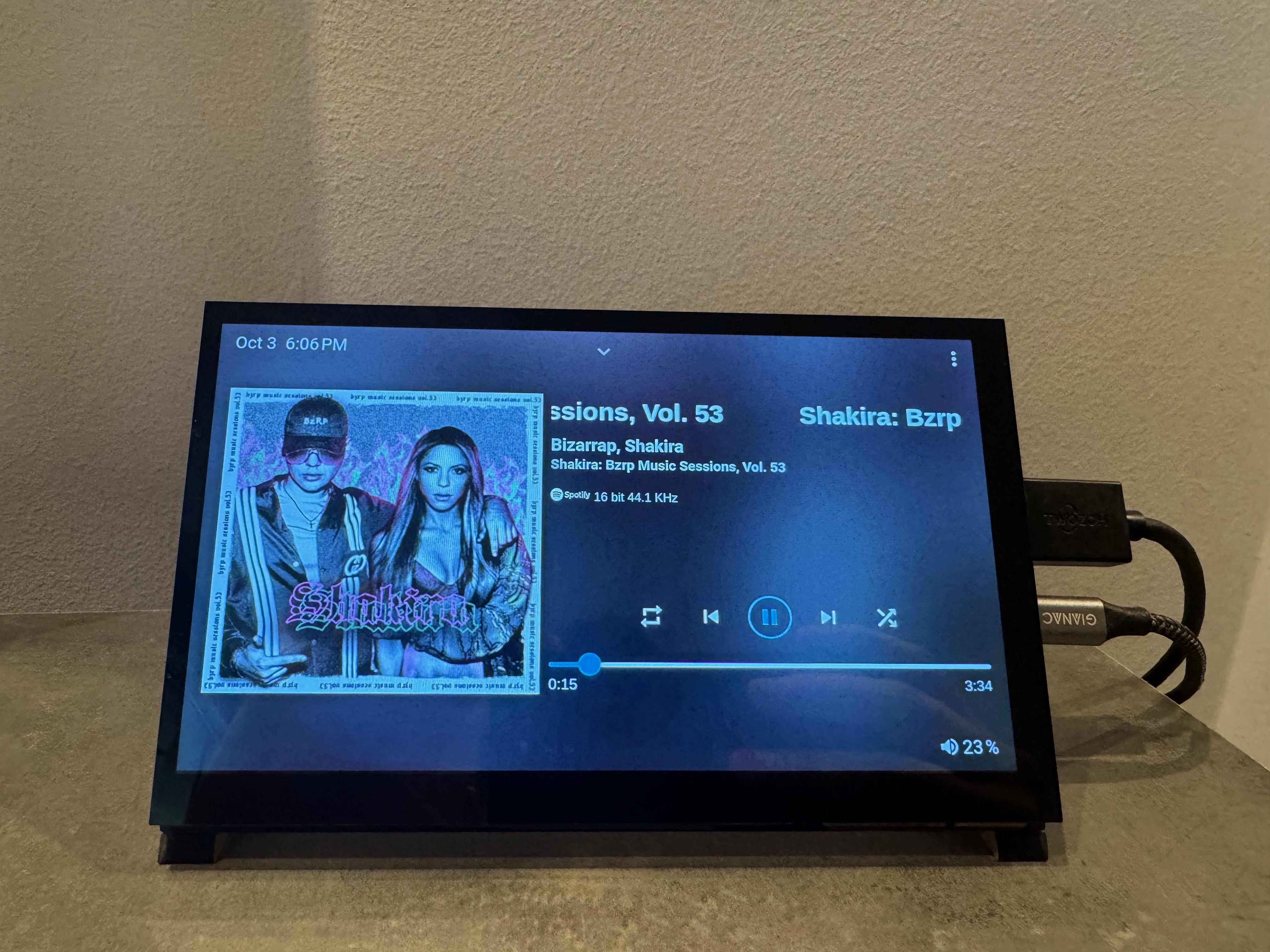After getting everything set up, I decided to take it a step further by adding a 7-inch touchscreen monitor to the server. I installed a window manager on the Proxmox distribution and wrote a small script to launch Chromium in kiosk mode at startup. The browser opens directly to Volumio’s web interface, displaying a sleek screen with song info and controls for pausing, skipping tracks, and adjusting the volume!